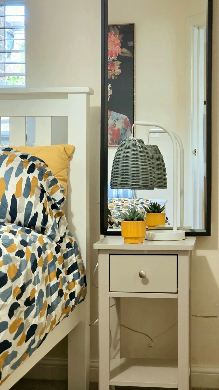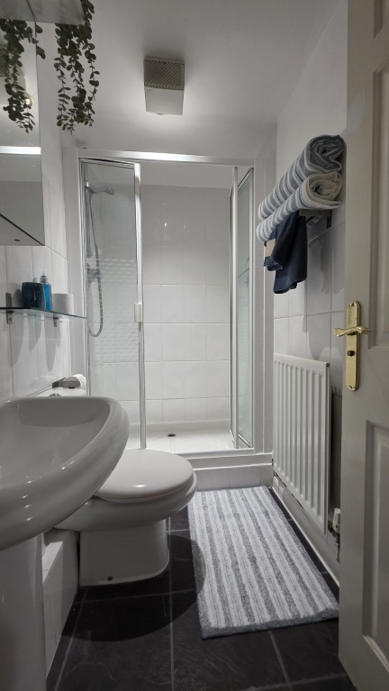The apartment features two spacious bedrooms: one with a plush large Double bed and ensuite with shower, and another with a super comfy and sturdy single bed for colleagues or families. The main bathroom includes a bath and shower for relaxation. The open-plan living area boasts a flat-screen Smart TV for streaming and a dining table which doubles up as a laptop workspace, ideal for remote work and group dinners. Stay connected with reliable high-speed WiFi, perfect for streaming or work. The fully equipped kitchen includes fridge/freezer, oven, hob and microwave, ensures effortless self-catering for busy schedules. There will be tea and coffee ready for your arrival, just bring your own milk.
